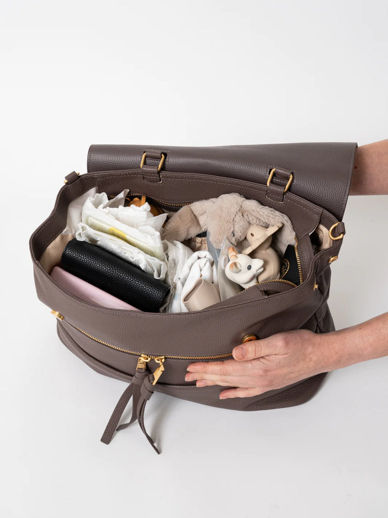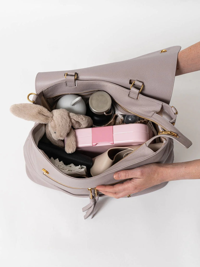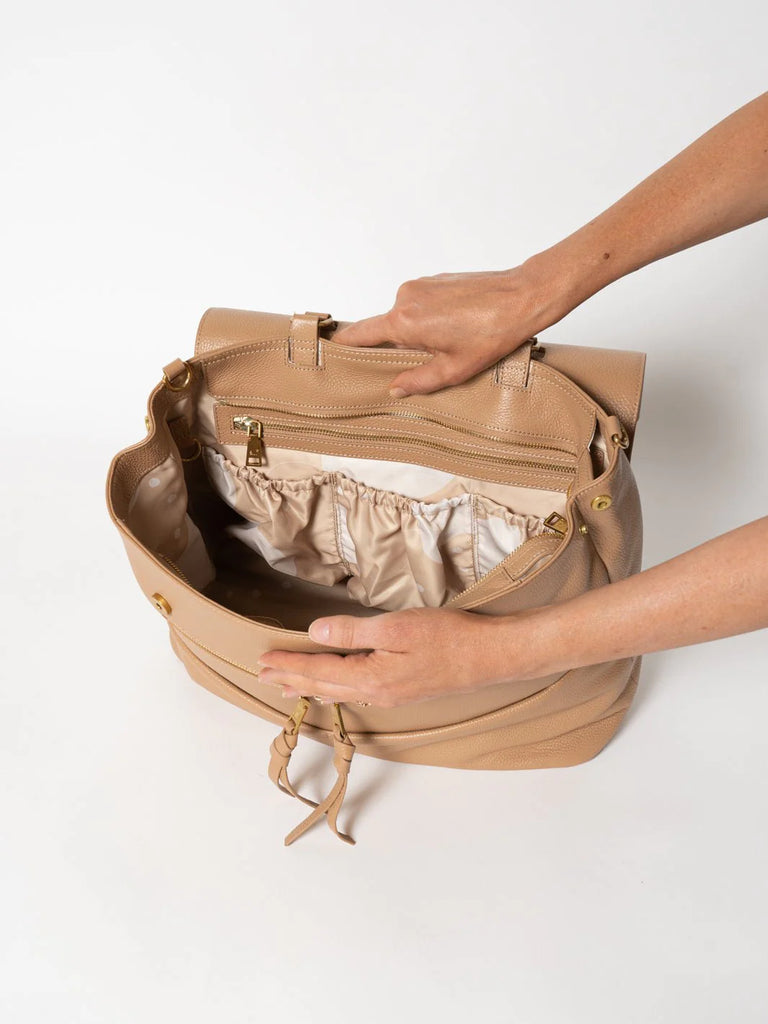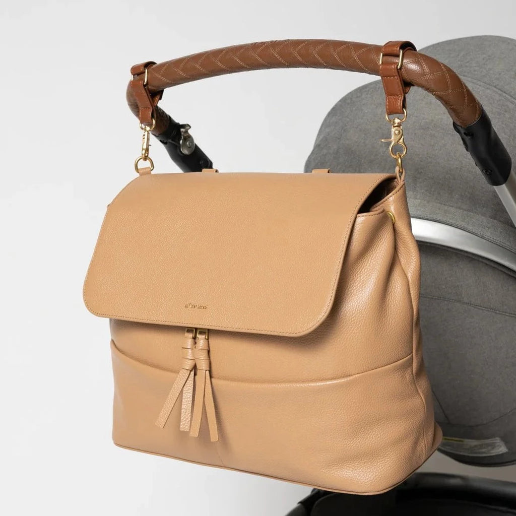 Wear your Ari however it suits you: as a tote with the top handle, attached to a pram with added pram straps (sold separately), as a backpack with two straps or converted into a satchel with one strap.