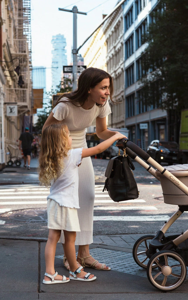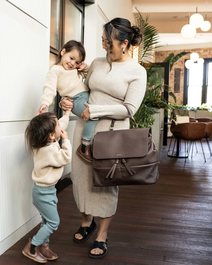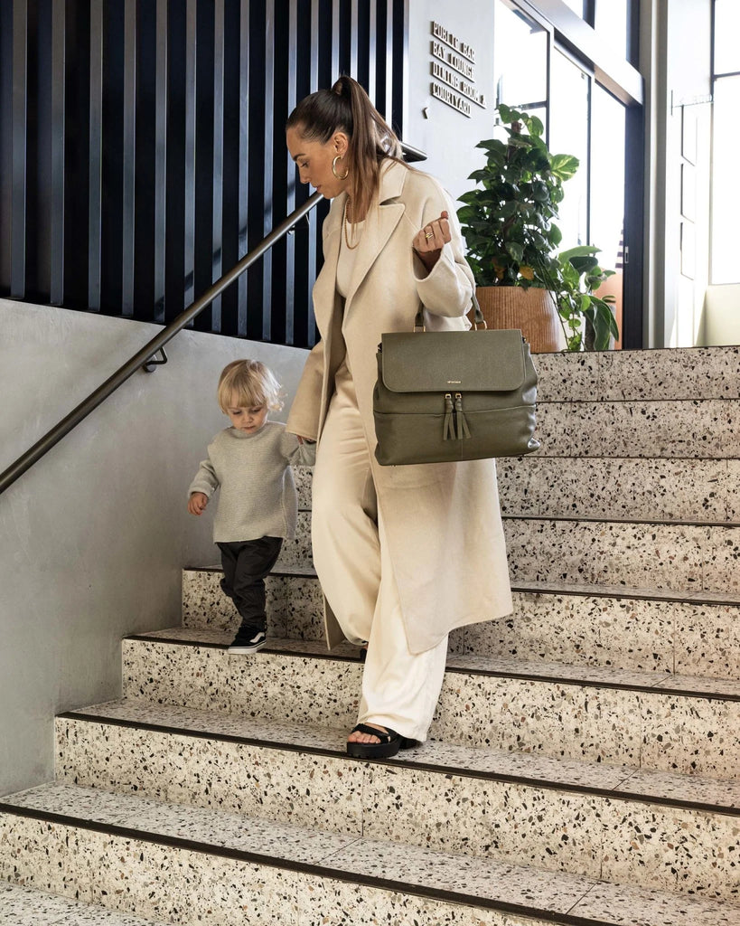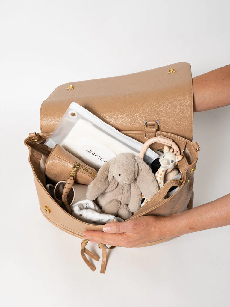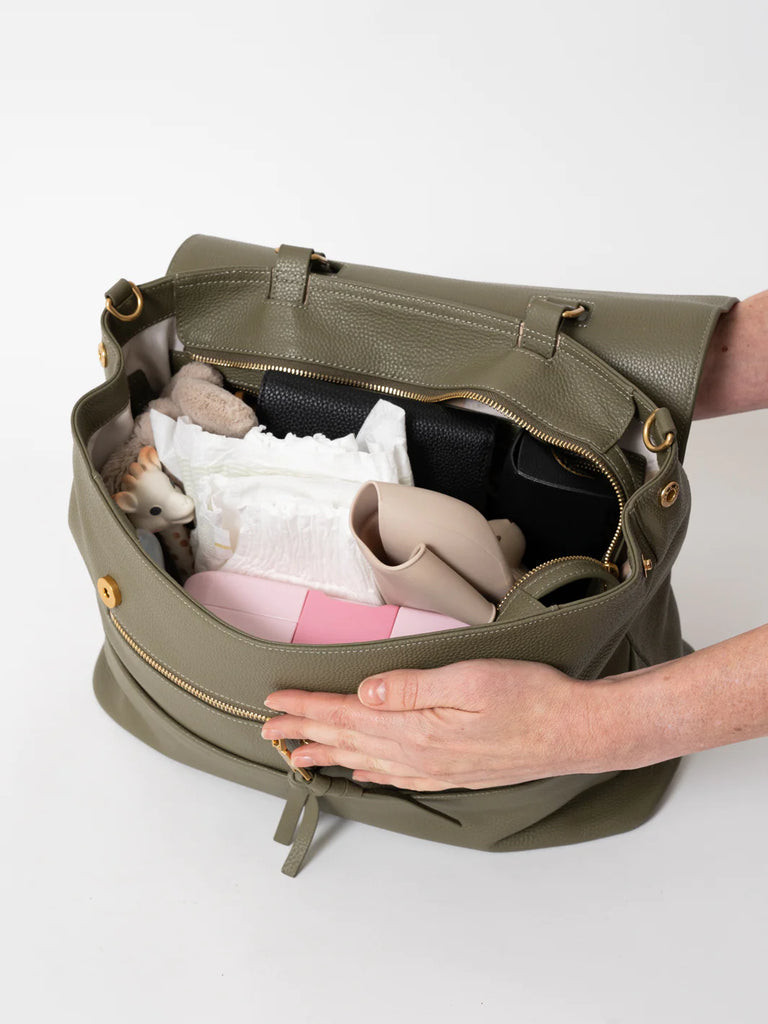 Wear your Ari however it suits you: as a tote with the top handle, attached to a pram with added pram straps (sold separately), as a backpack with two straps or converted into a satchel with one strap.