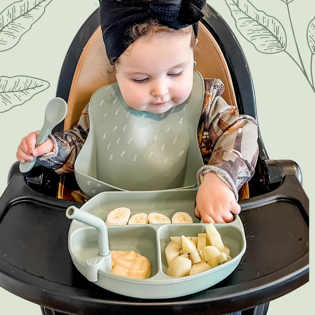 Silicone Bib with spoon - Olive
