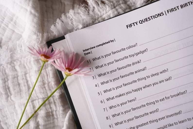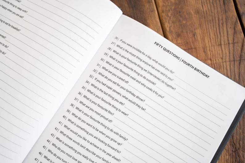 Fifty Questions is a unique twist on your average baby journal capturing your loved one’s milestones through their responses to the same questions every year on their birthday (or whenever you have time to sit down for one or a few solid blocks of time together). In the early years, simply record in the baby book what you think they would say if they could talk. You can write down their answers to the questions when they’re a little older, or encourage them to do it themselves – documenting the change in their handwriting as time passes within the pages of the journal.