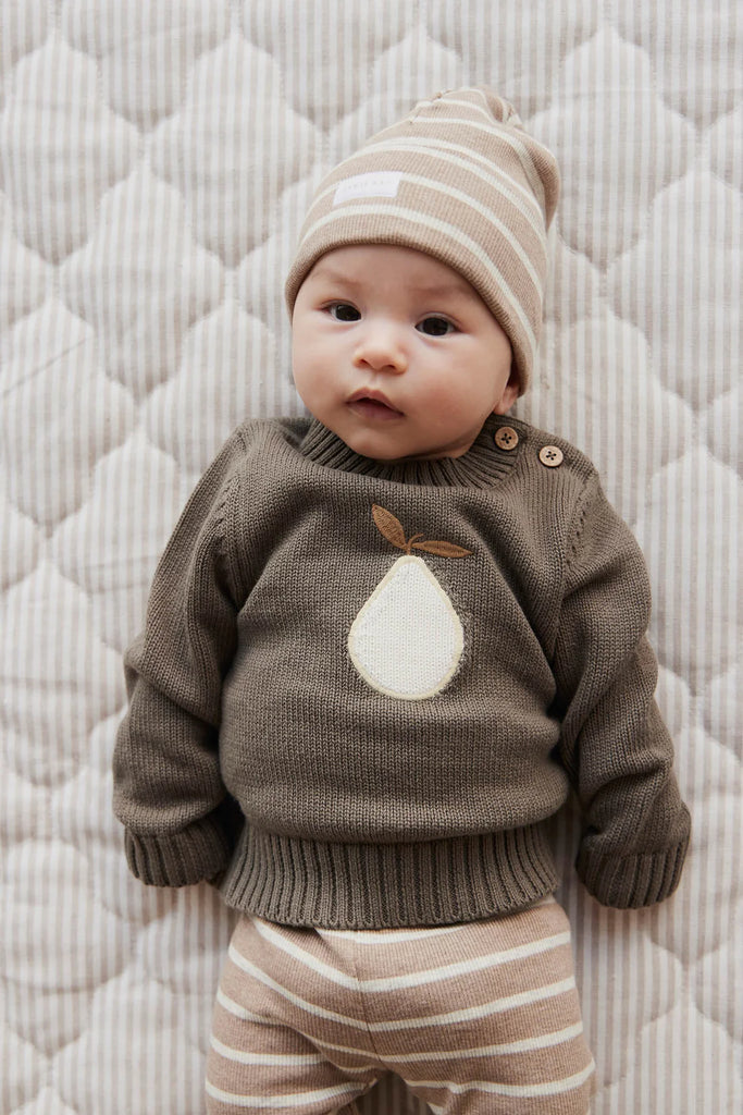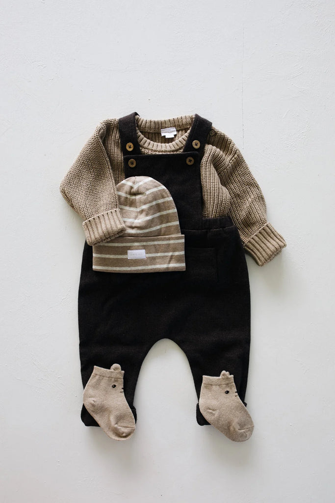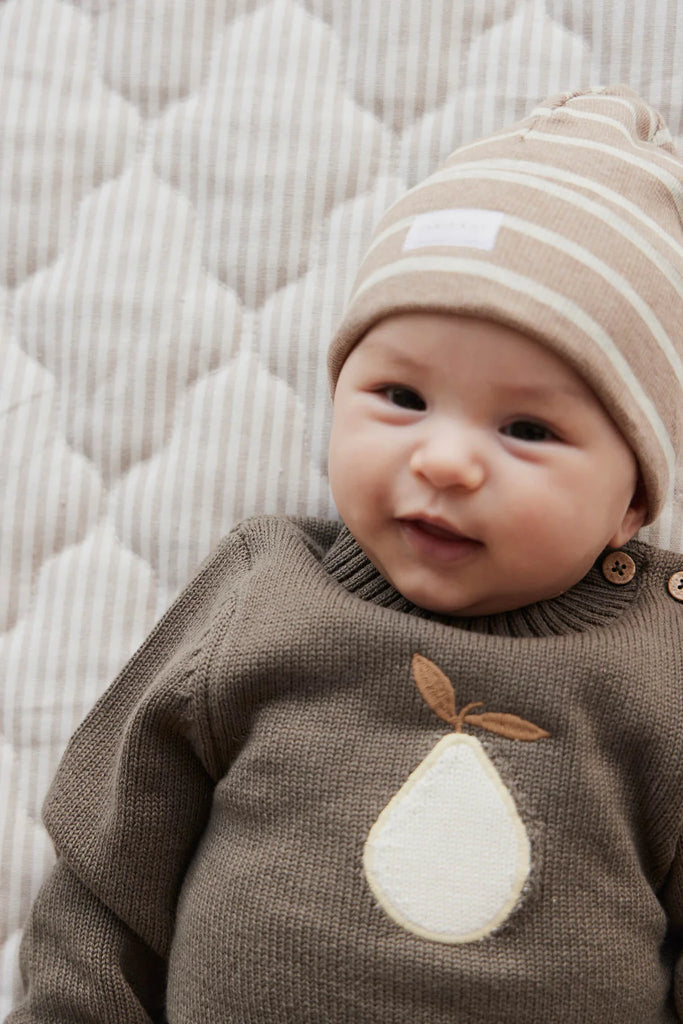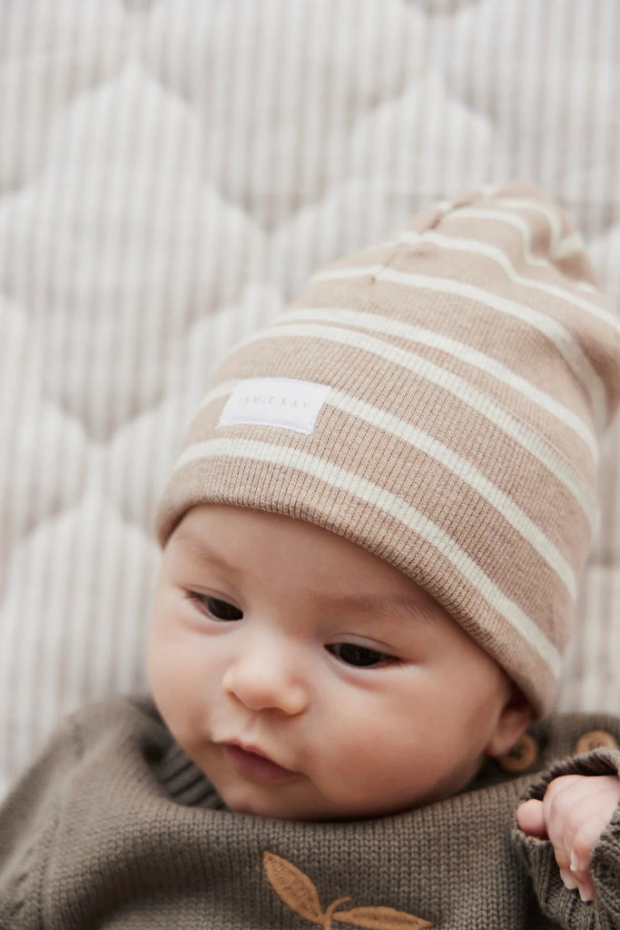 Organic Cotton Fine Rib Beanie - Elias Stripe Sable Marle