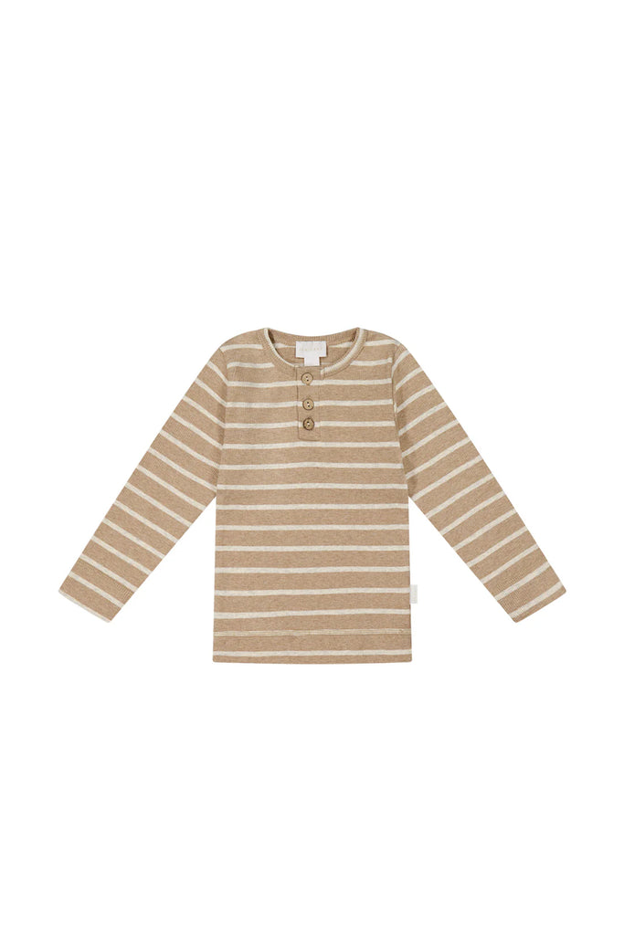 Organic Cotton Fine Rib Long Sleeve Top - Elias Stripe Sable Marle