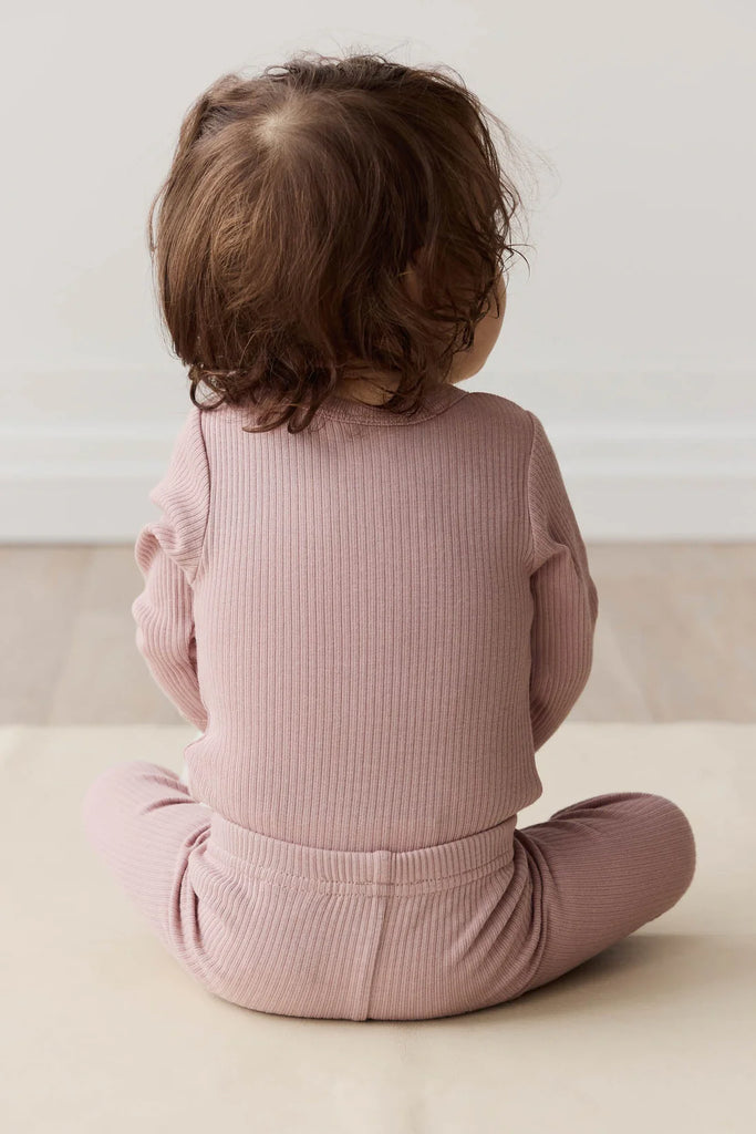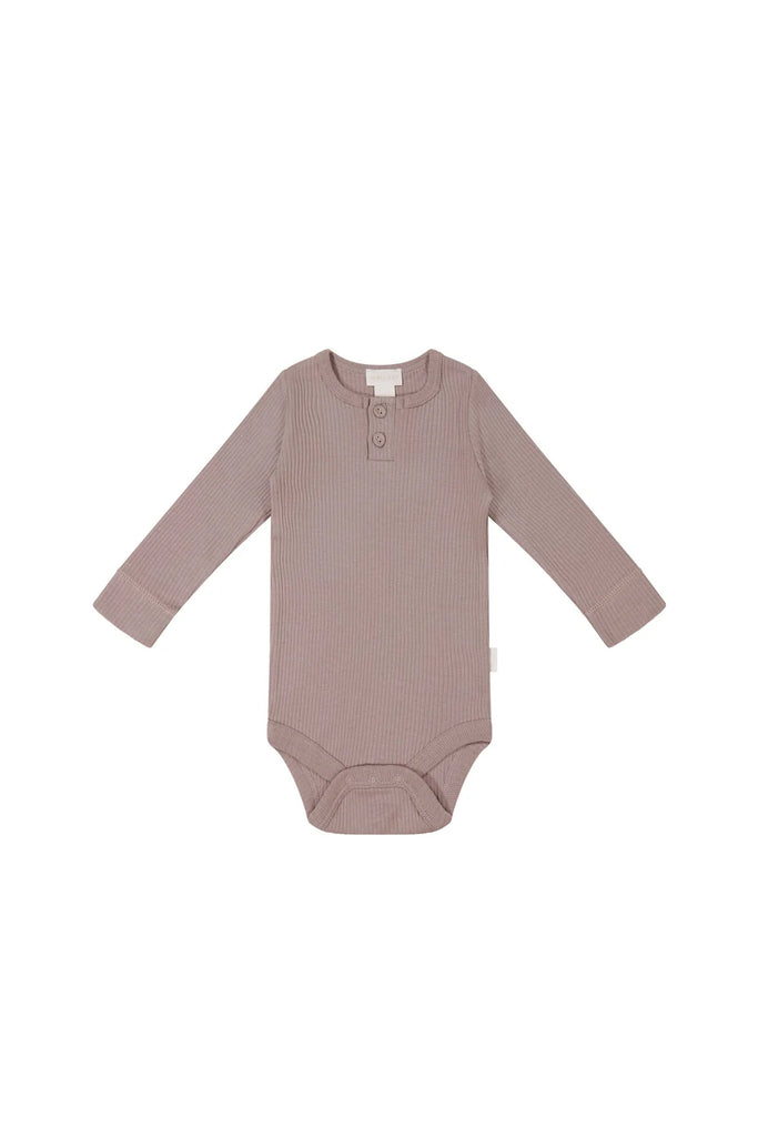Organic Cotton Modal Long Sleeve Bodysuit - Mauve Shadow