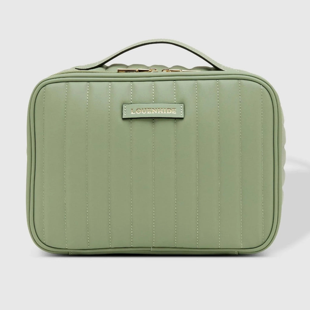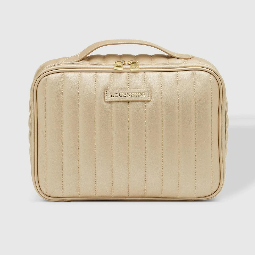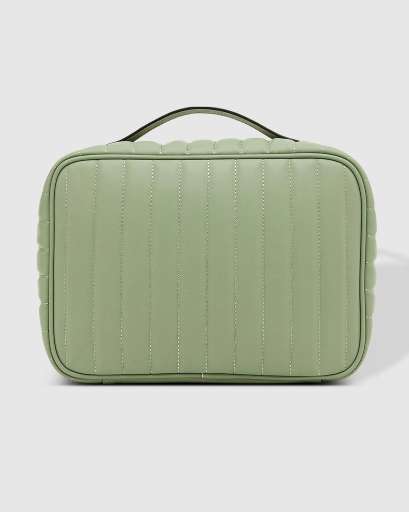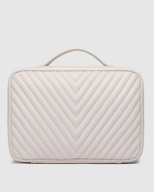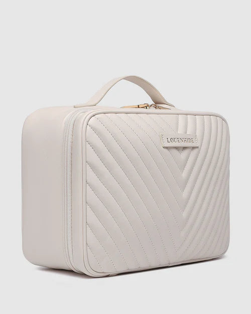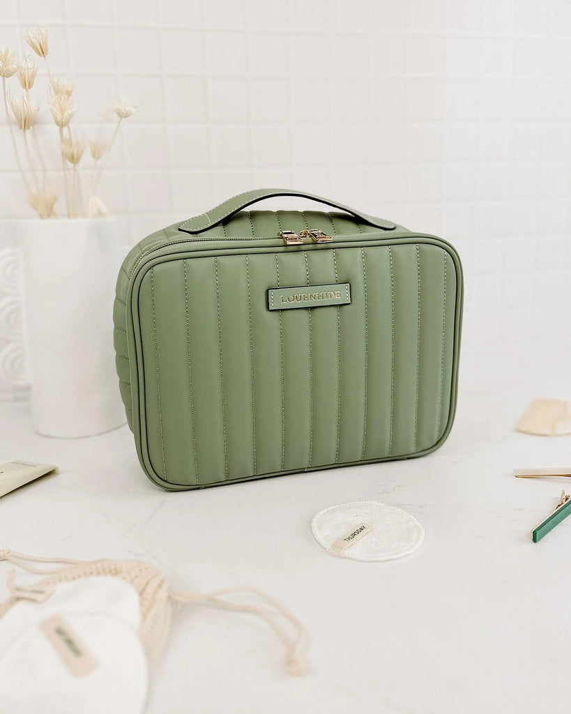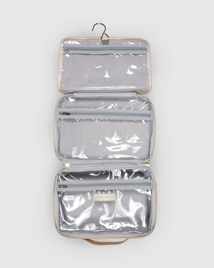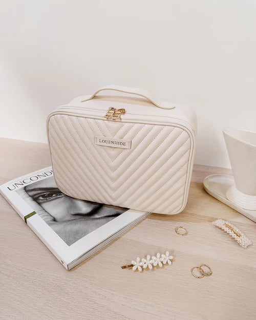 The Louenhide Maggie Cosmetic case is a beautiful quilted large makeup bag. Designed to be functional and spacious with three zipped compartments to store you makeup, skincare, and toiletries all in one. Comes with a hanging hook for easy access on the go! Take with you on weekend adventures or around the world!