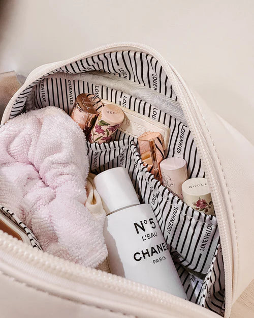 The Louenhide Lacey Vanilla Quilted Makeup Bag is an elevated must-have beauty essential. Crafted from a soft-to-touch quilted vegan leather, this spacious women's cosmetic case stores all your travel essentials with its secure zip closure. Perfect for your carry-on, this travel toiletry bag will keep all your beauty essentials at your fingertips. *Beauty products not included.