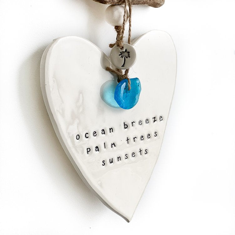 Handmade Ceramic Heart Wall Hanging 'Ocean Breeze, Palm trees, Sunsets'