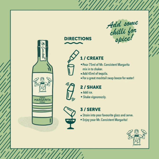 Mr. Consistent’s cocktails only feature the freshest ingredients. Each of our mixers are handmade with love so that you can drink consistently amazing cocktails wherever you are.