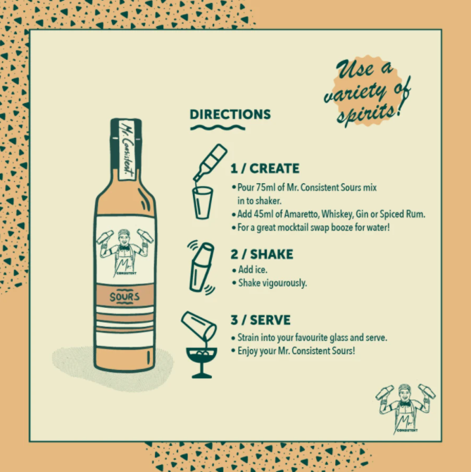 Mr. Consistent’s cocktails only feature the freshest ingredients. Each of our mixers are handmade with love so that you can drink consistently amazing cocktails wherever you are.