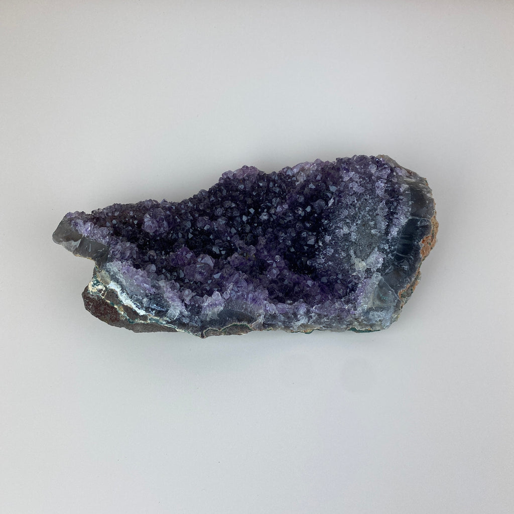 Amethyst in its natural form. Plate of naturally grown Amethyst points from Brazil.
