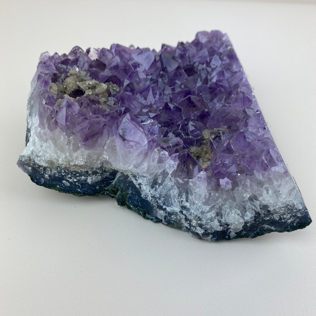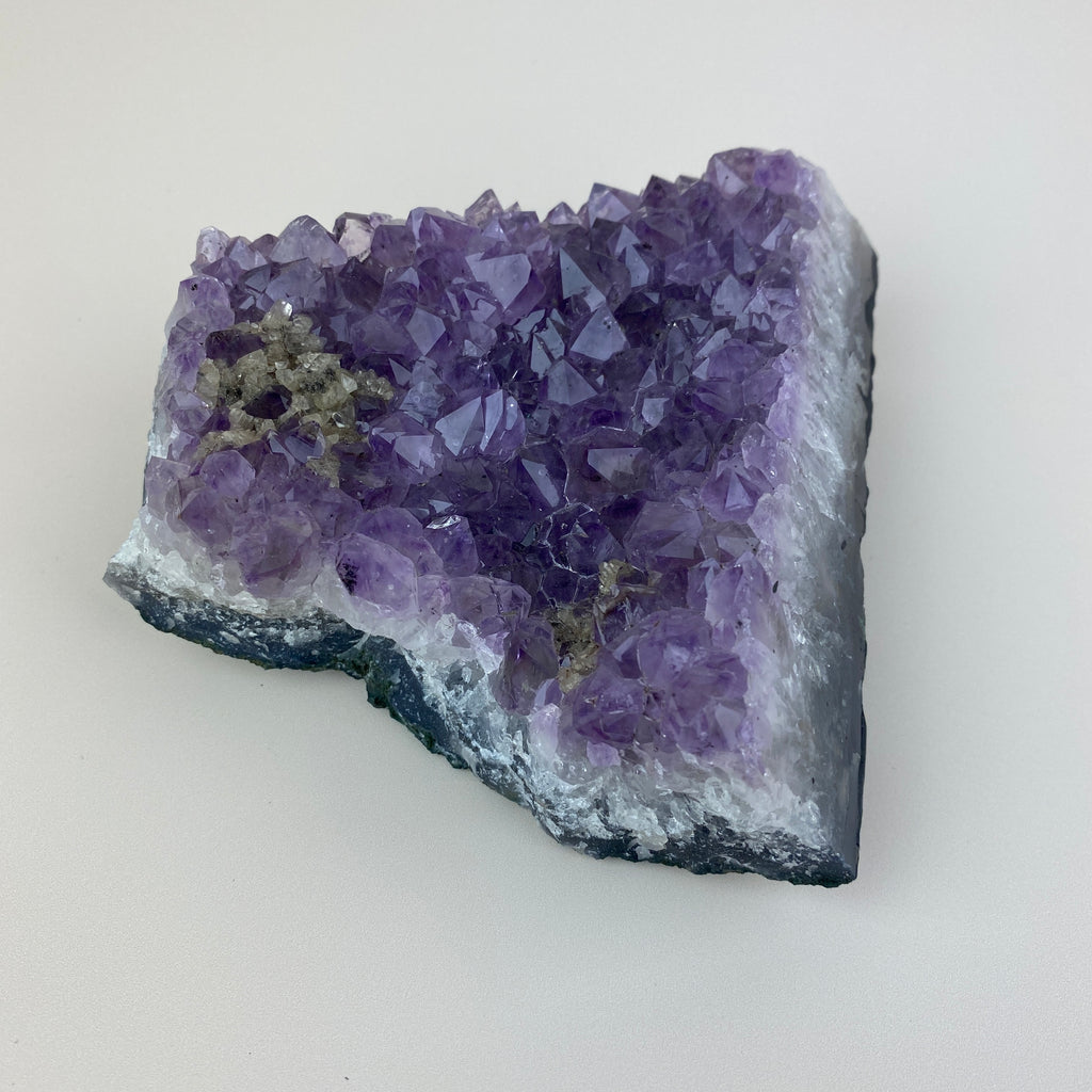 Amethyst in its natural form. Plate of naturally grown Amethyst points from Brazil.