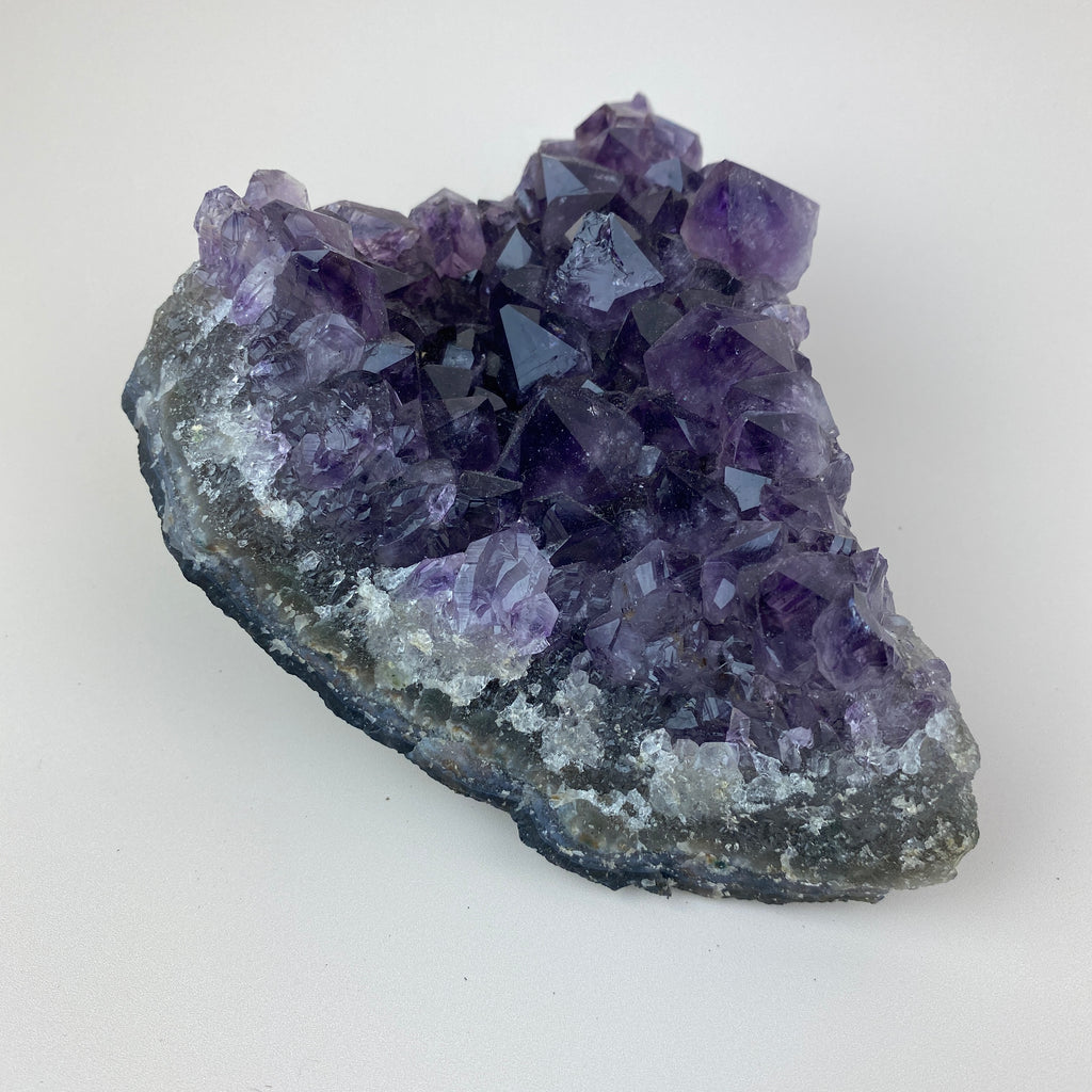 Amethyst in its natural form. Plate of naturally grown Amethyst points from Brazil.