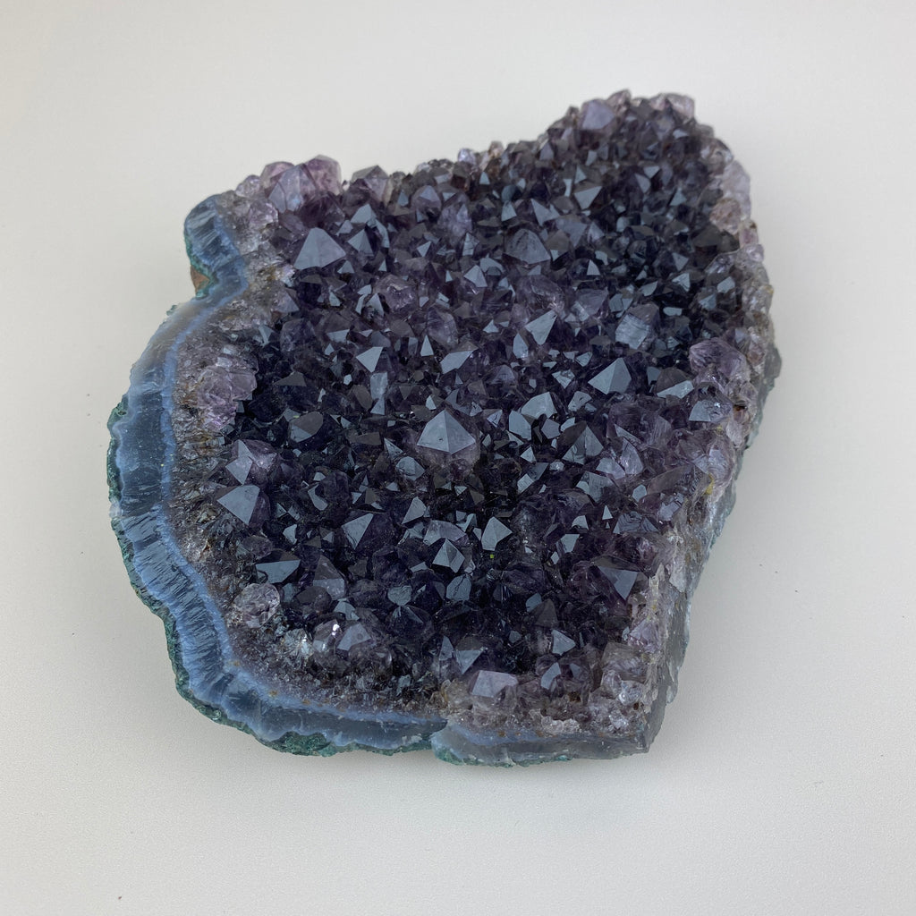 Amethyst in its natural form. Plate of naturally grown Amethyst points from Brazil.