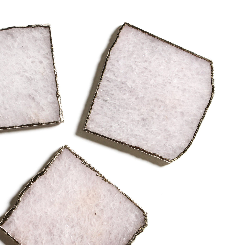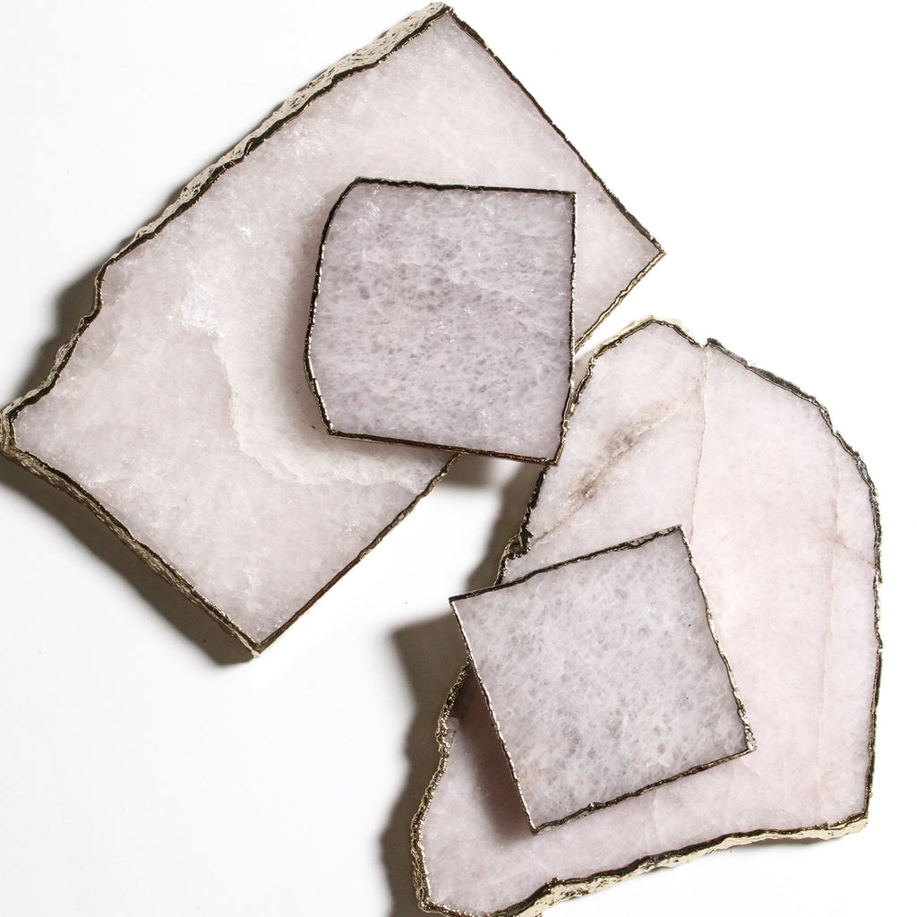 Our quartz coasters come in 2 varieties, White Quartz & Green Aventurine.