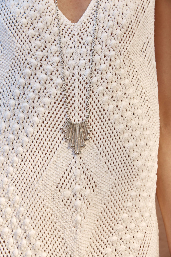 For a touch of effortless style this summer, look no further than the Nouveau Necklace. Crafted with a blend of cotton, iron, and stunning glass beads, it offers three unique designs that ensure you stand out. This necklace brings a timeless elegance to any ensemble, making it your new go-to accessory for every occasion.