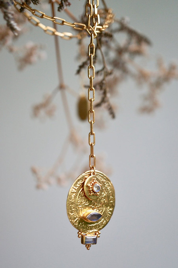 You say Witches like it’s a bad thing, but magic is neither good nor evil. Enchantment is held in this vintage coin, and its delicate gemstones, tiny pieces of the universe. Witches necklace will vibrate to your own, unique frequency x