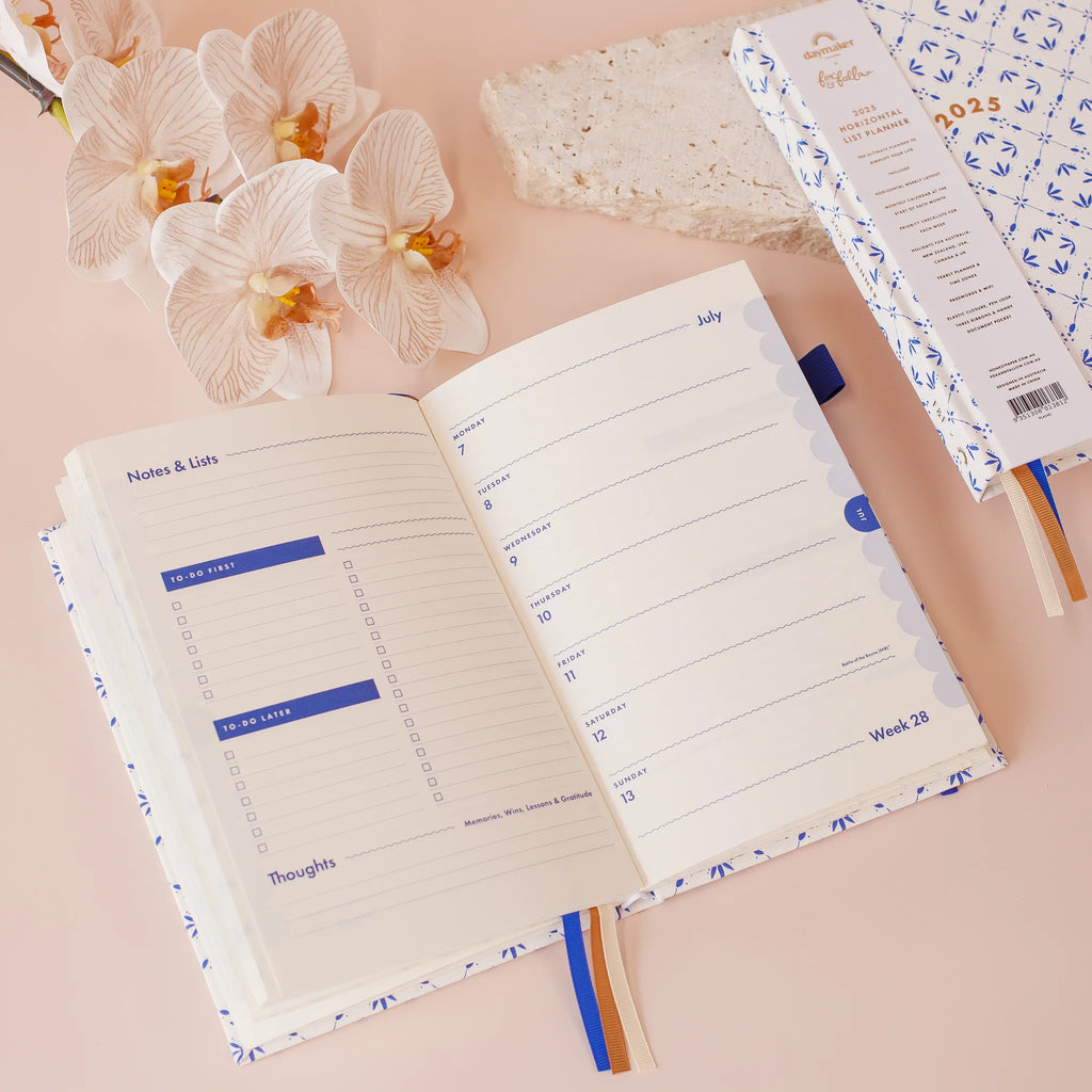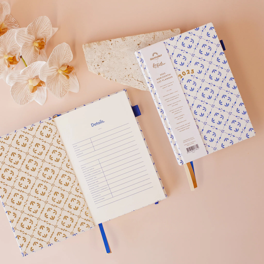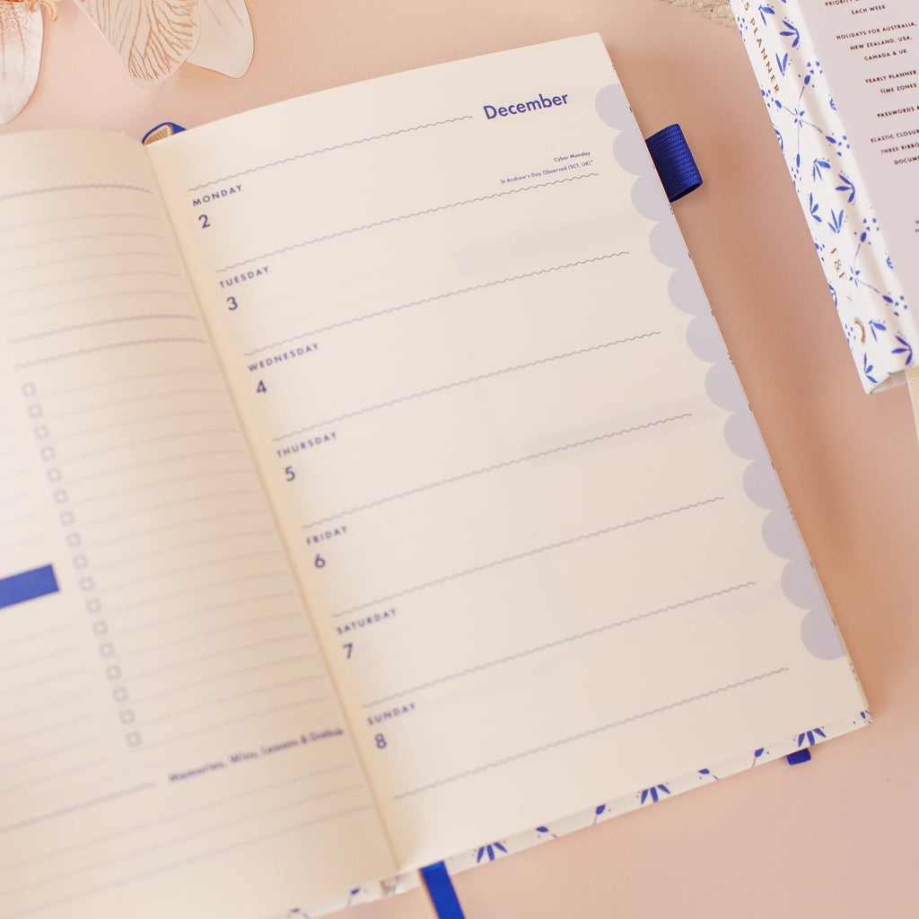 Each 2025 planner has been designed to be beautiful, functional and long-lasting, with patterned end pages, three ribbons and premium 100gsm luxe cream paper. Holidays & observances for Australia, USA, Canada, UK & New Zealand. Packaged in a cello sleeve with gold foil bellyband.