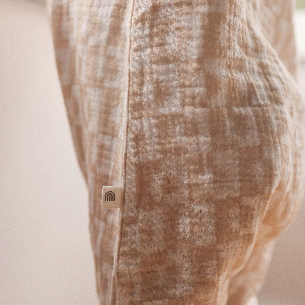 This airy organic cotton romper is lightweight and sleeveless, with a handy button henley style front to make dressing a breeze. Plus, it has an in-leg opening for effortless nappy changes. Perfect for playtime or family outings.