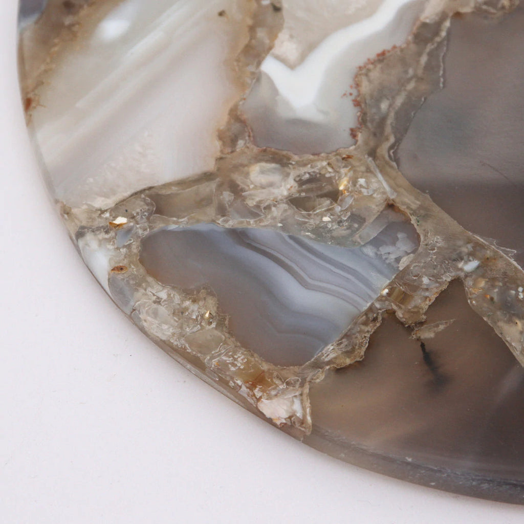 Both timeless and contemporary, agate is one of those enduring materials that we return to season after season. We think it adds a touch of luxury to any space, but also love pairing its neutral tones with raw, organic textures. In our home, for instance, we pair agate accents with wooden candle holders, glass votives or vintage brass trinkets. And, this rule applies to our dining table and kitchen, too. Crafted by hand from natural food-grade stone, our Claudette Agate Serving Board is incredibly chic while remaining inherently practical. From dinner parties with loved ones to themed soirees, this piece will enhance and elevate each of your curated tablescapes.