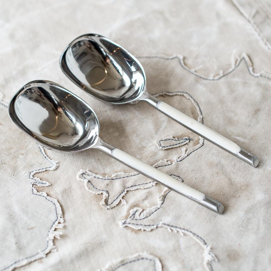 This stainless steel scoop is perfect for ice, deserts, rice or more. Available in 4 different style handles - polished, burnished, white inlay, wood inlay.