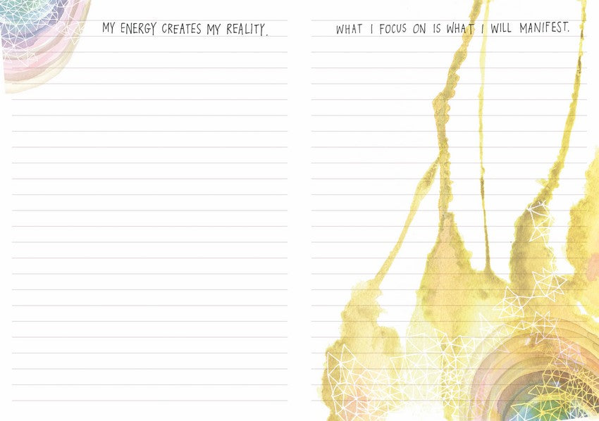 A beautiful writing journal with colorful, inspiring pages, interspersed with quotes based on Gabrielle Bernstein's key teaching of trusting the universe.