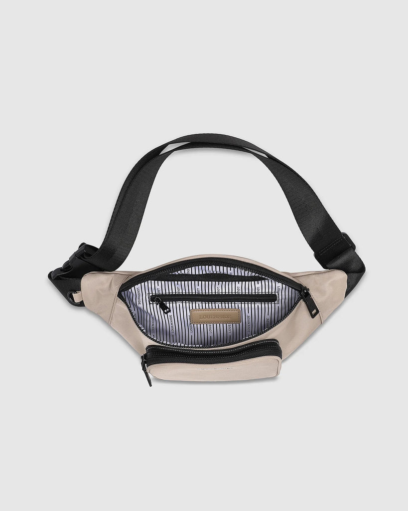 The Louenhide Brooklyn Belt Bag is your ultimate go-to for wherever the day takes you. From morning dog walks and market days to travelling abroad, this classic and versatile piece is the perfect bum bag for travel. Made from a durable nylon, this everyday essential host's ample space for all your must-haves, including your phone and wallet to sunscreen and keys, Brooklyn Oat makes it easy to stay on the move without missing a beat. Whether worn as a sling bag across your chest or as a bum bag around your waist, its timeless silhouette ensures you’ll reach for this bag year after year, no matter the season or the adventure. Step out in understated style and experience the elevated ease of the Brooklyn Belt Bag – an essential for those on the move.