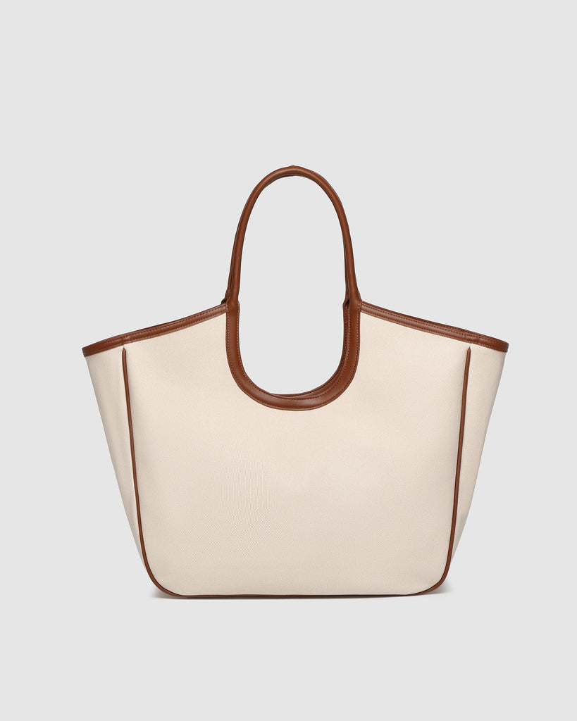 The Alexandra Canvas Tan Tote Bag is a modern essential, thoughtfully designed to carry you from workdays to weekends with ease. This spacious everyday carryall bag balances elevated style and everyday function, making it the perfect lightweight work tote for women that also doubles as your weekend market companion. The tan vegan leather complements the neutral canvas, offering a balanced aesthetic suitable for both casual outings and formal settings. Designed with a structured silhouette and vegan leather double handles, she features a roomy interior to fit your laptop, notebook, and other daily essentials. A discreet magnetic closure keeps your belongings secure while offering effortless access throughout the day. Whether you're headed to the office or exploring weekend plans, Alexandra is your go-to carryall — polished, practical, and made to move with you.