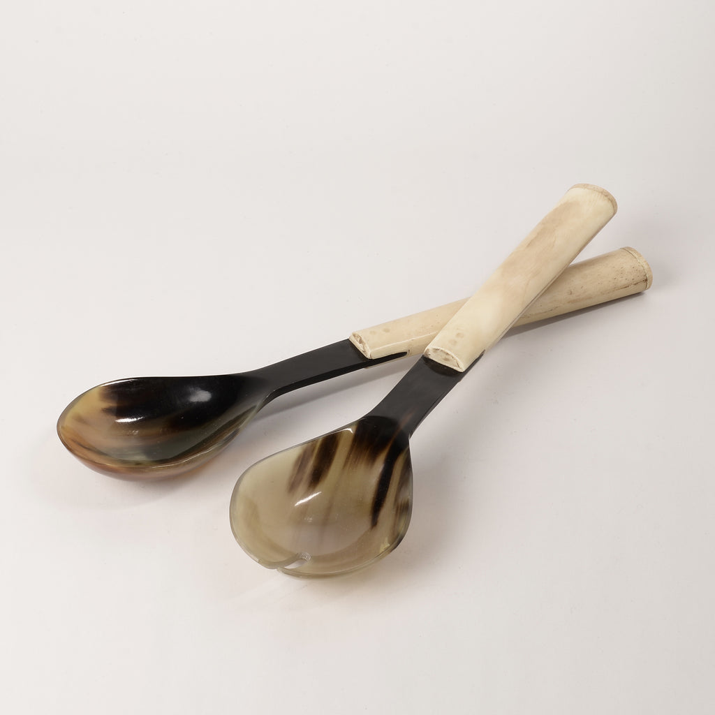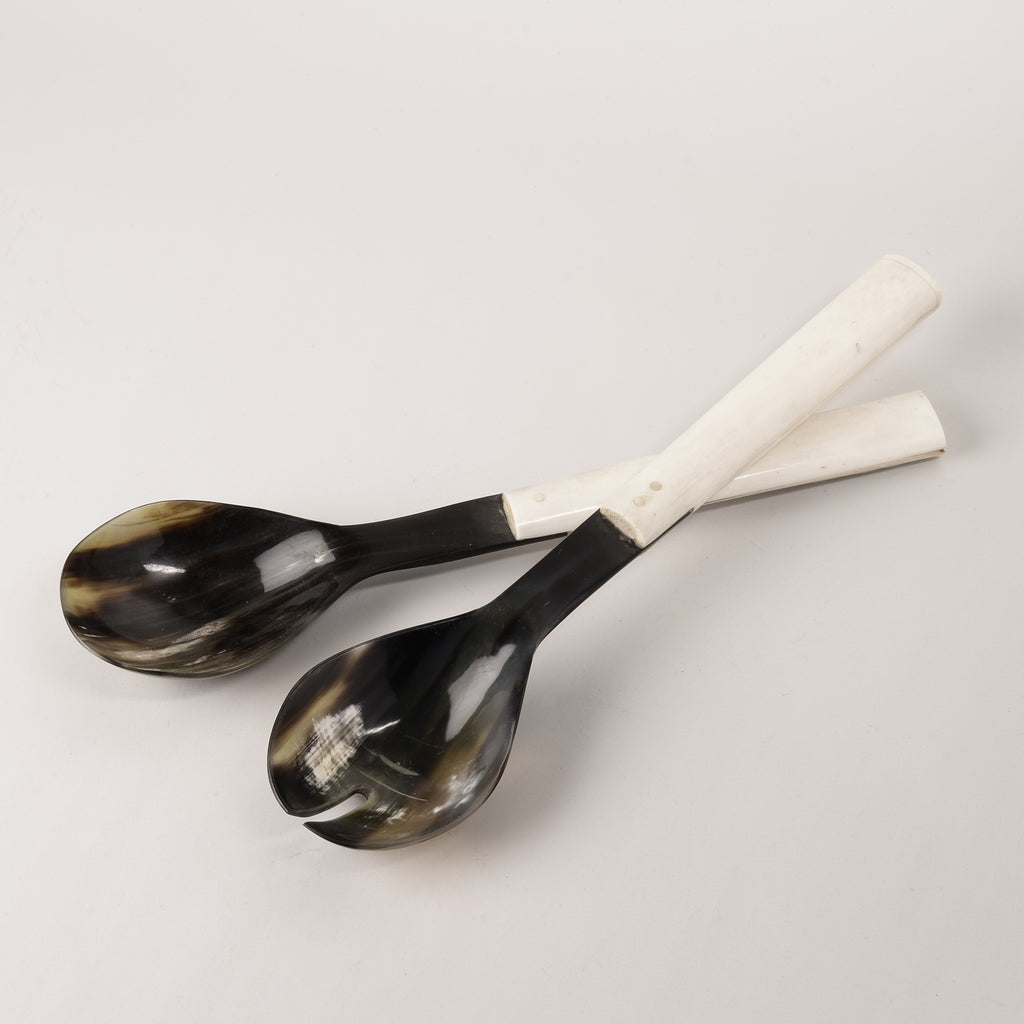 Beautifully crafted horn and bone salad servers. These handcrafted set of salad severs are a stylish table top accessory for your home. Available in white or stained bone handles.