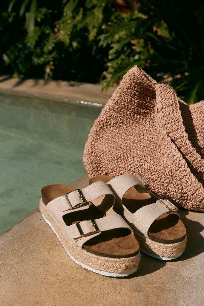 Embrace laid-back summer vibes with the Playa Slide! With gold-tone hardware and wide straps, these sandals will be your go-to for effortless style. Whether you're hitting the beach, exploring the local markets, or jetting off on a summer adventure, these flatform sandals will have you covered!