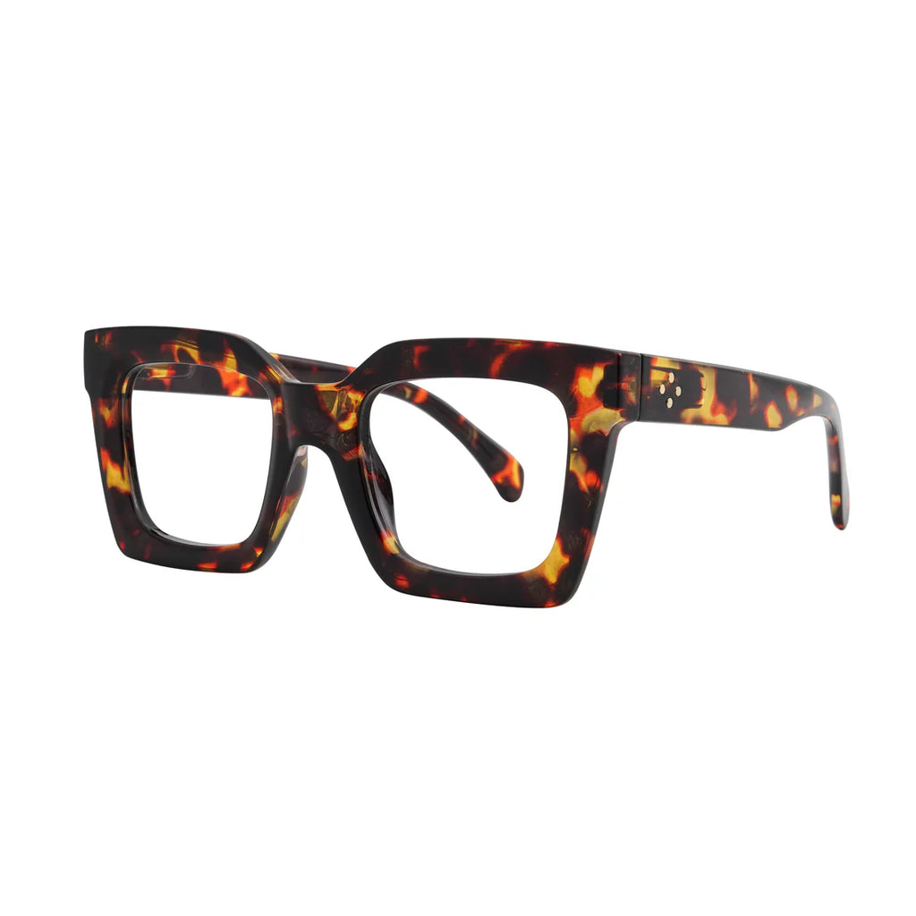 The sharp, clean lines of the square shape provide a structured and refined look, in a high gloss, tortoise shell finish with gold hardware.