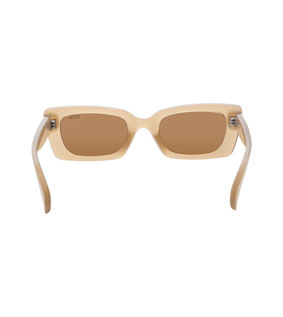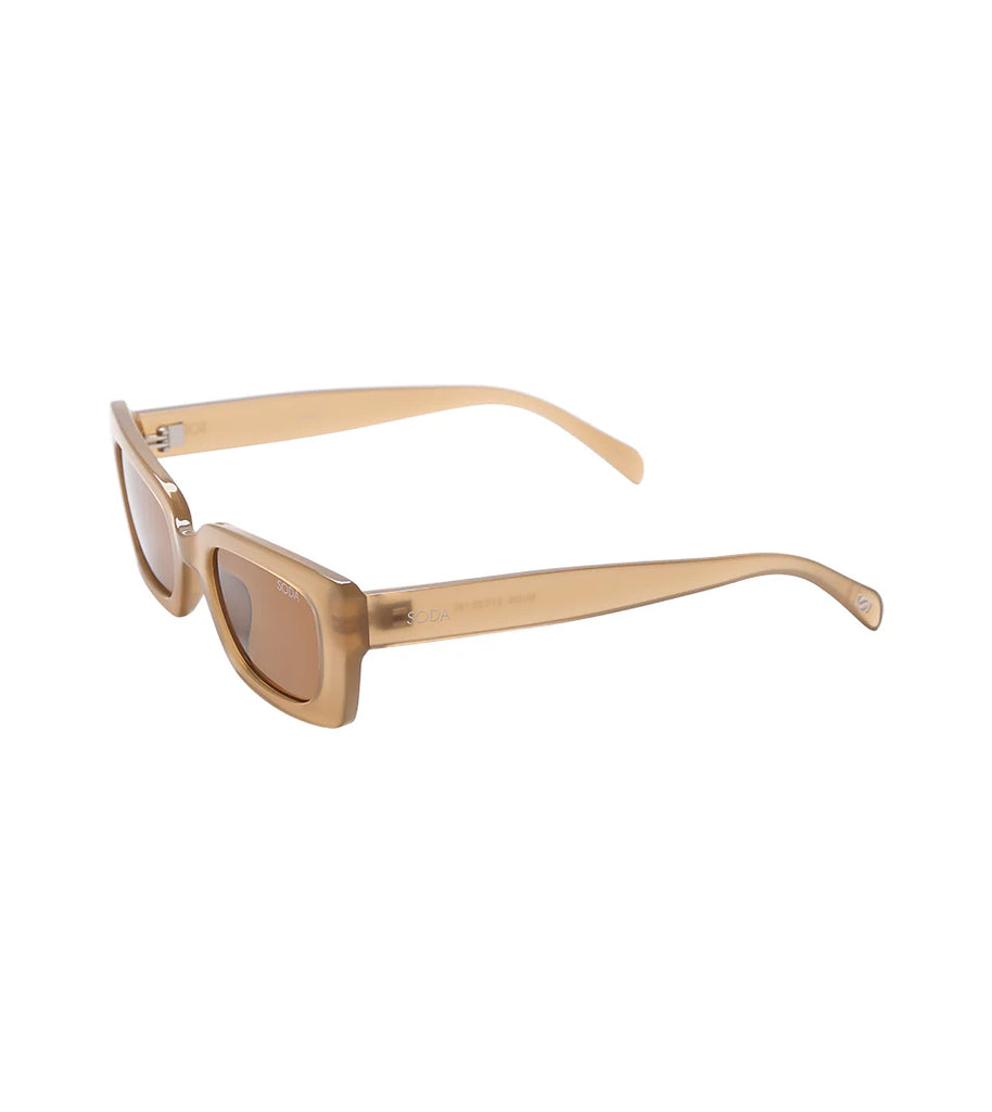 A timelessly cool pair of SODA sunglasses featuring a rectangular silhouette. Pared down with an upswept twist, this frame flatters everyone. The re-edition of this silhouette is slightly curved and ultra fabulous. Crafted using bio material and finished with polarized lenses to cut out glare.