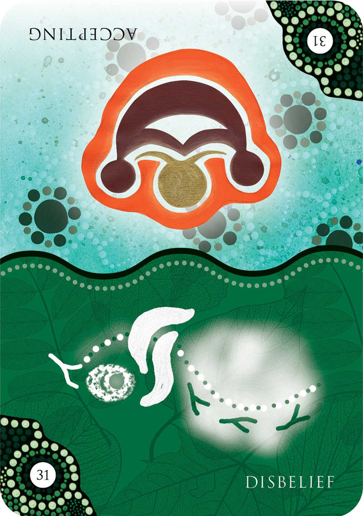 Aboriginal Ancestral Wisdom Oracle has a unique method of exploring the same situation from various viewpoints, by including a light and dark message from the Ancestors on each card, all the while working between 4 different environments: