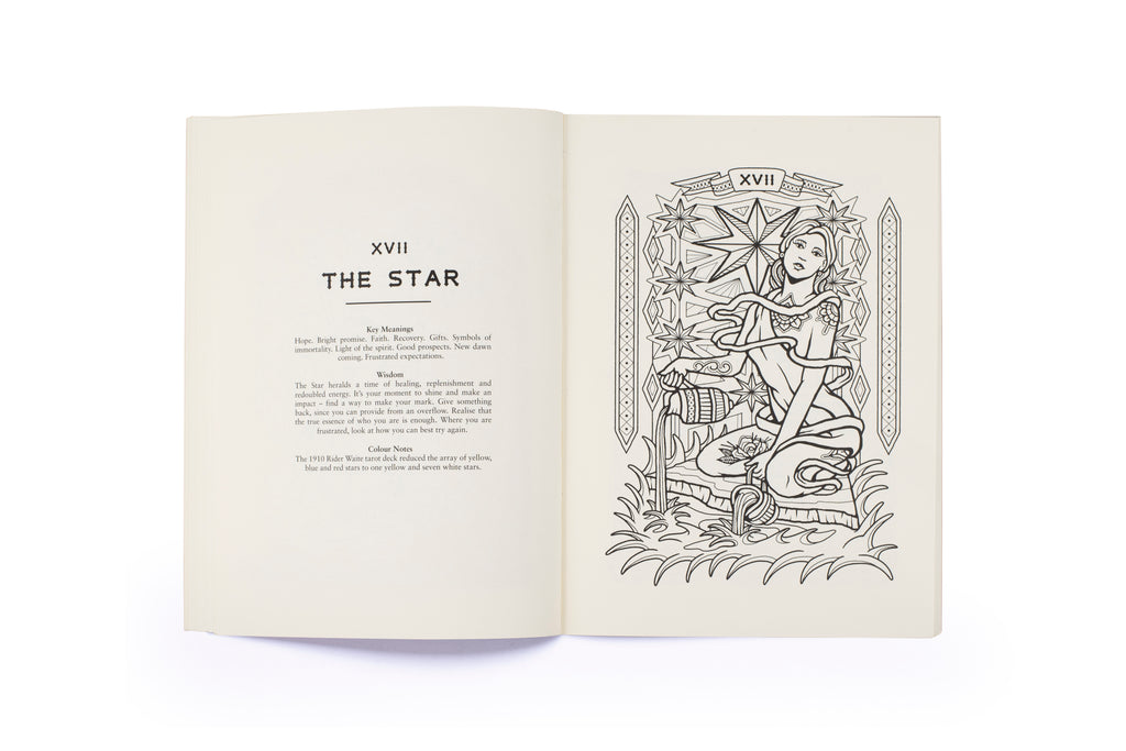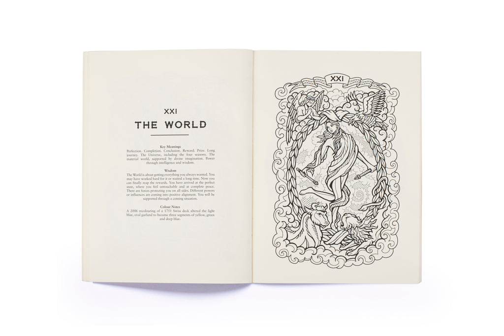 From the creator of the best-selling Tattoo Colouring BookThe Tarot Colouring Book features images from Oliver Munden’s equally successful  Tattoo Tarot, specially re-designed for colouring. From the golden lion symbolising Strength to the fertile green of The World, tarot imagery is bursting with significance, and colouring fans will delight in the intricate details. Follow in the steps of the fool as he undertakes his tarot journey from innocence and ignorance to completion and perfection, as you colour your way through this personal growth journey in book form.