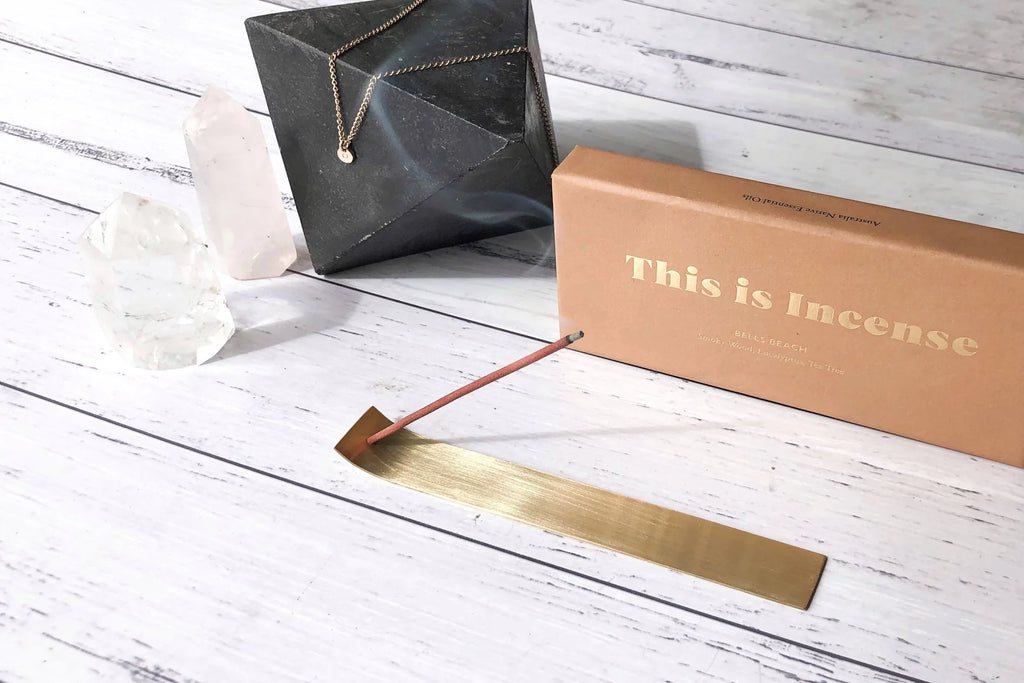 Hold your Incense sticks in a beautifully hand crafted, Matte gold Brass holders by Torquay jeweller Kirsty Leif. We love to support local creatives at This Is Incense.