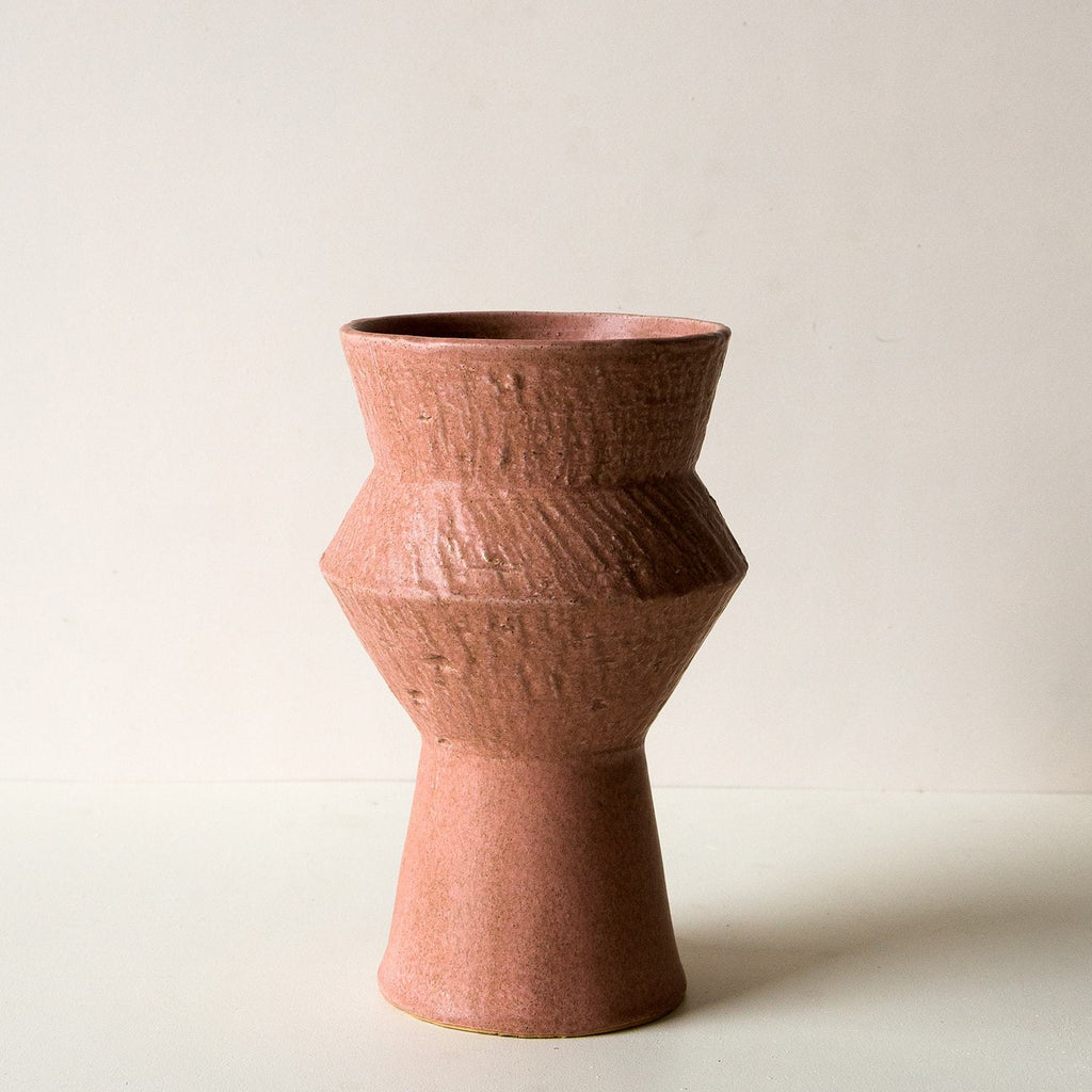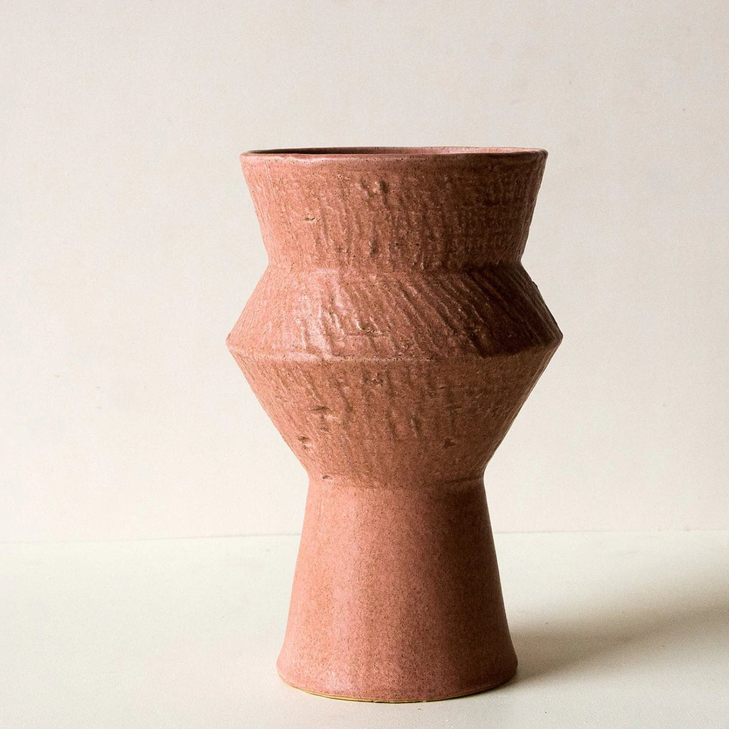 Fusing fun, angular shapes with mid-century design, our range of Larson vases have been handcrafted from the highest quality earthenware in a beautiful off-white hue. Each piece has just the right amount of texture and features subtle patterns on its surface. We love pairing our Larson with a bunch of native wildflowers to perfectly complement its form.