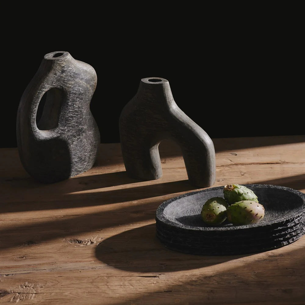 Our showstopping Marisol Marble Vase has been handcrafted from green slate, a stunning natural stone that has quite a dark charcoal colour. The abstract shape of this sculptural vase is reminiscent of Picasso's figures. This marble vase will look beautiful on its own, paired as a set with the Del Slate Marble Vase or with some simple dried flowers. Please Note: the stone has is unsealed and so can not hold water.