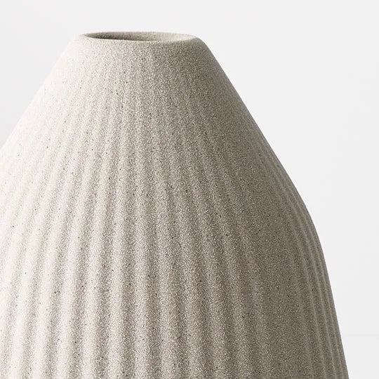 The cone-shaped Pilu speckled vase offers a distinctive silhouette, perfect for single stems or standalone display. Its speckled finish adds rustic charm, making it a versatile and eye-catching accent piece, effortlessly enhancing any space with its unique allure.