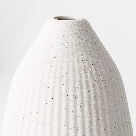 The cone-shaped Pilu speckled vase offers a distinctive silhouette, perfect for single stems or standalone display. Its speckled finish adds rustic charm, making it a versatile and eye-catching accent piece, effortlessly enhancing any space with its unique allure.