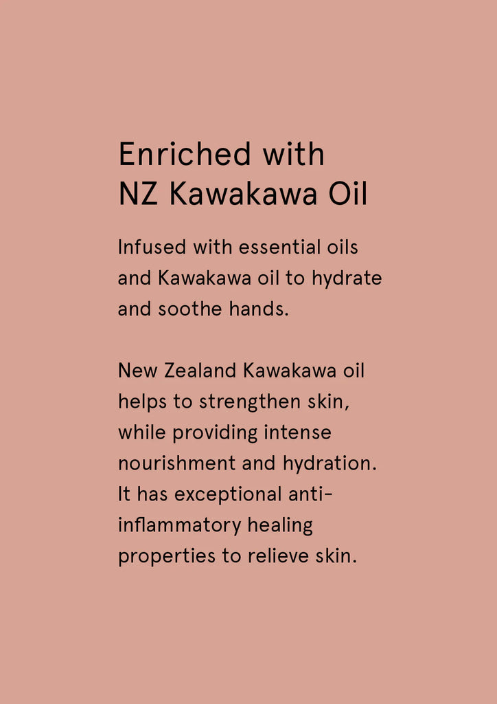 Perfumed with soothing floral notes of peony, rose, iris, vetiver and tonka bean. Infused with NZ Kawakawa Oil, essential oils and SPF15.