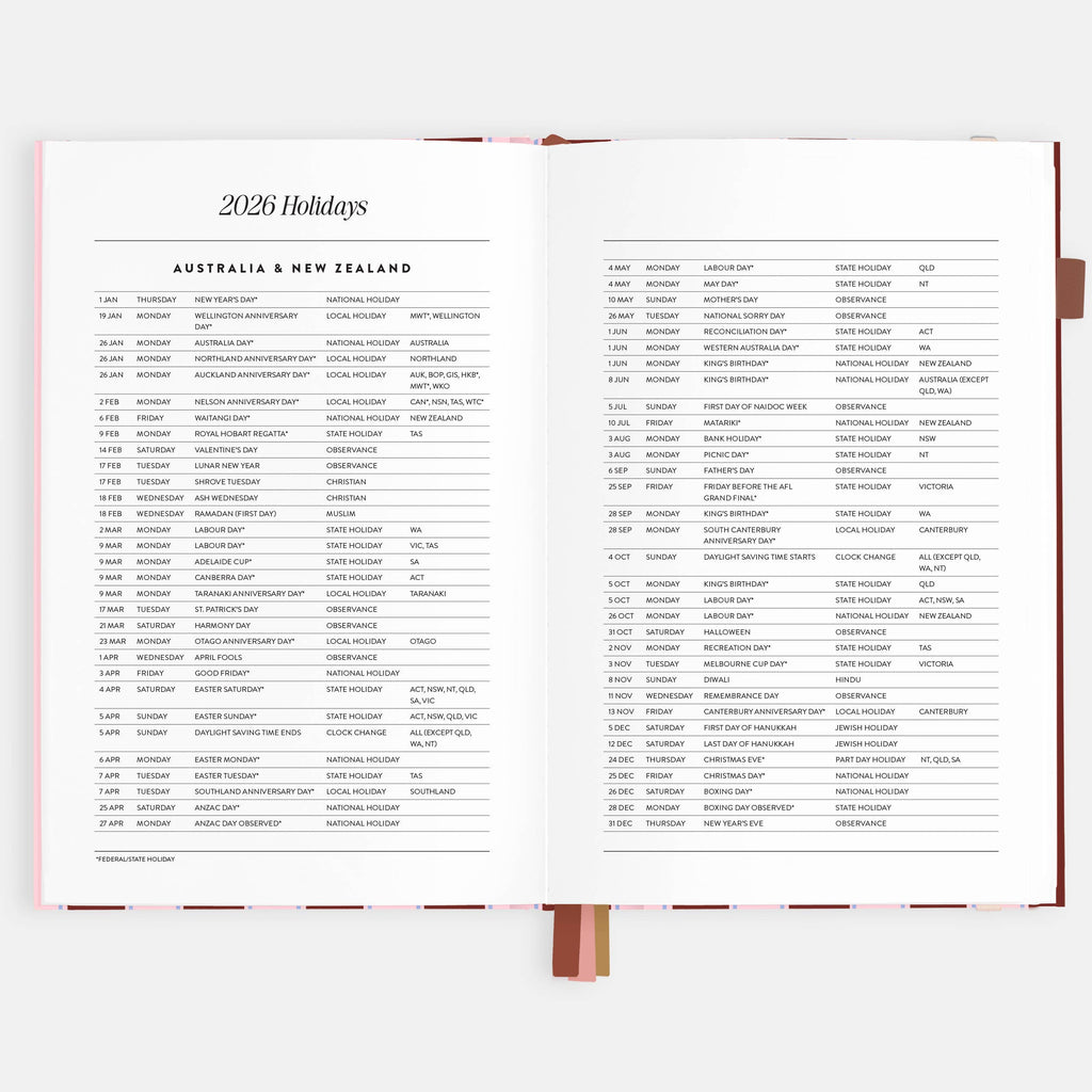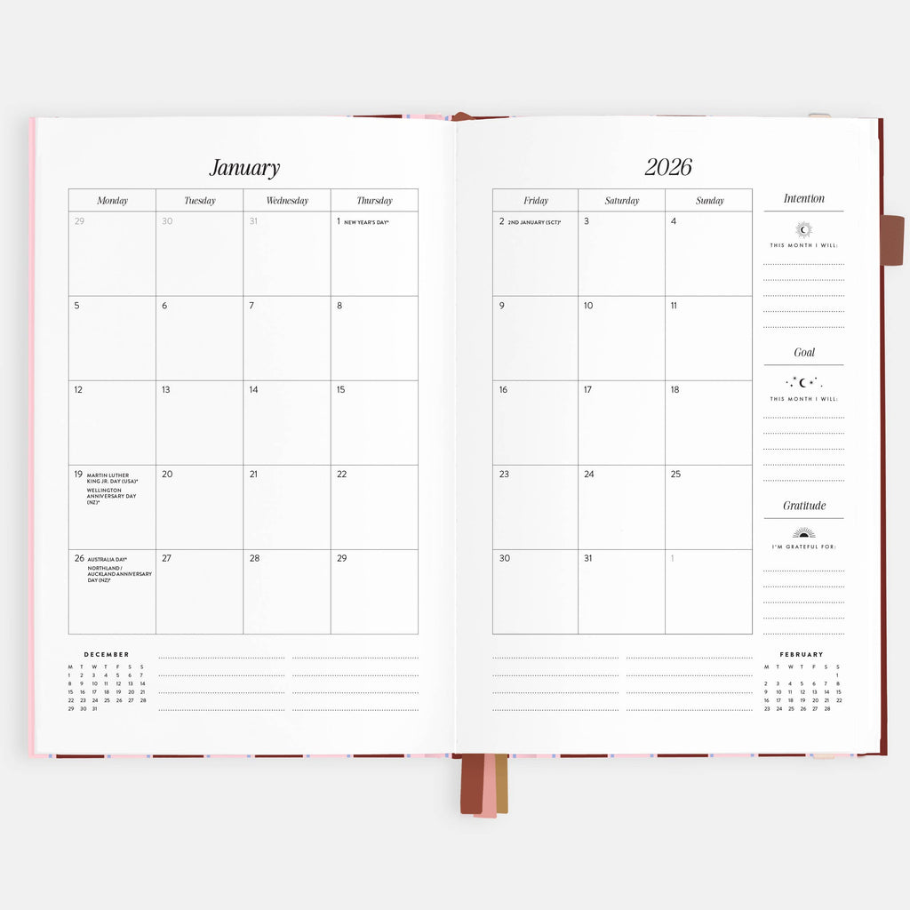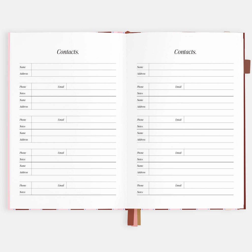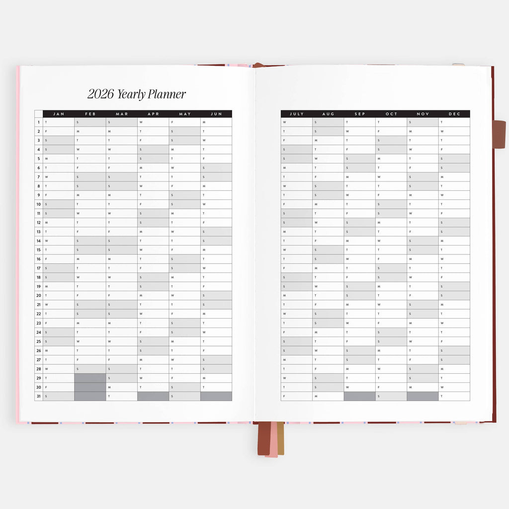 Our best-selling A5 planners are back with a brand new vertical layout and a new planning system designed to simplify your life. At Fox & Fallow we're all about making planning simple. Your planner should de-stress and simplify your life, not make it more rigid or complicated. That's why we've designed a planning system split into two halves - for your left and right brain. Featuring a vertical weekly layout, lay-flat binding, elastic closure and pen loop, document pocket at the back, three ribbons, gold foil edges, added blank pages. One week per spead and monthly spreads at the beginning of each section. Premium 120gsm paper. 208 pages.