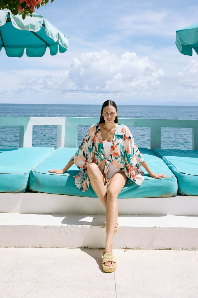 An easy summer cover-up in the exclusive print design, Estate. Made from soft printed viscose for lightweight comfort. Features versatile tie front that can be fastened at the back or worn open. Designed for an oversized, relaxed fit with a slight crop.