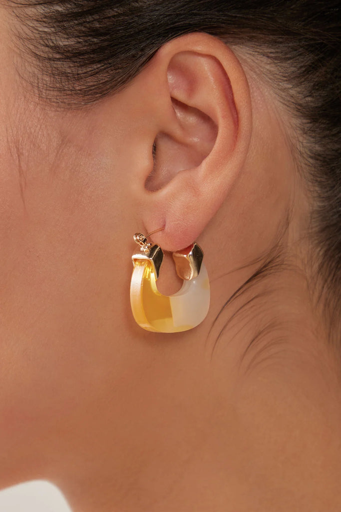 A contemporary cuff earring with marbled pastel detail and pinched gold hoop. An effortless pop of colour.